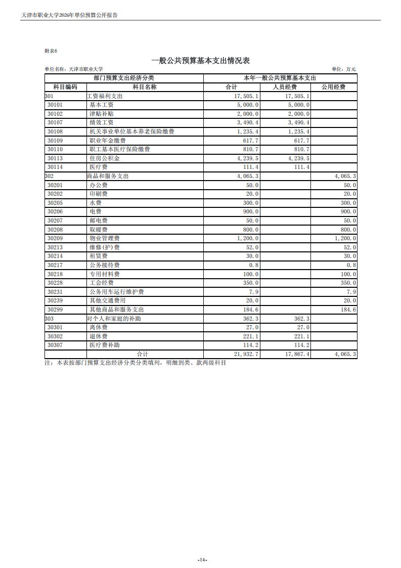 天津市职业大学2026年度单位预算.pdf