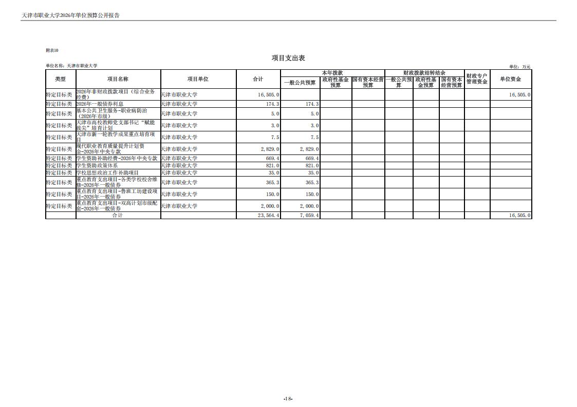 天津市职业大学2026年度单位预算